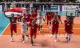 Timnas voli putra Indonesia berhasil meraih medali emas usai menang dengan skor 25-21, 25-10, dan 25-15.