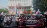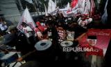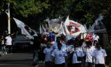 REPUBLIKA.CO.ID,JAKARTA -- Sejumlah massa dari Relawan Sahabat Ganjar mengibarkan bendera saat melaksanakan longmarch di Jakarta, Selasa (9/5/2023).