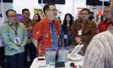 REPUBLIKA.CO.ID, JAKARTA -- Wakil Menteri Perdagangan Jerry Sambuaga (tengah), melakukan transaksi layanan Quick Response (QR) Antarnegara di booth PT Artajasa Pembayaran Elektronis (Artajasa) saat kunjungan pada Festival Ekonomi Keuangan Digital Indonesia (FEKDI), di Jakarta, Senin (8/5/20023).