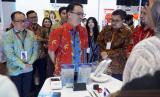 Wakil Menteri Perdagangan Jerry Sambuaga (tengah), melakukan transaksi layanan Quick Response (QR) Antarnegara di booth PT Artajasa Pembayaran Elektronis (Artajasa) saat kunjungan pada Festival Ekonomi Keuangan Digital Indonesia (FEKDI), di Jakarta, Senin (8/5/20023). Hadirnya layanan QR Antarnegara yang melibatkan sejumlah lembaga keuangan, termasuk Artajasa diharapkan dapat mendorong pembayaran lintas negara yang lebih cepat. (FOTO : Dok Republika)