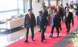 Presiden Joko Widodo menyambut para kepala negara yang hadir sebelum membuka acara puncak Konferensi Tingkat Tinggi (KTT) ke-42 ASEAN di Hotel Meruorah Komodo, Labuan Bajo, Nusa Tenggara Timur (NTT).