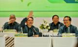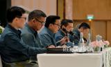Presiden Direktur PT Adaro Minerals Indonesia Tbk (ADMR) Christian Ariano Rachmat (kedua kanan) berbincang bersama Presiden Direktur PT Adaro Energy Indonesia Tbk (ADRO) Garibaldi Thohir (ketiga kiri) dan jajaran direktur lainnya saat Rapat Umum Pemegang Saham Tahunan (RUPST) PT Adaro Minerals Indonesia Tbk di Jakarta, Rabu (10/5/2023). (FOTO : Republika/Thoudy Badai)