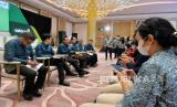 Presiden Direktur PT Adaro Minerals Indonesia Tbk (ADMR) Christian Ariano Rachmat didampingi Wakil Presiden Direktur Iwan Dewono Budiyuwono, Direktur Totok Azhariyanto dan Direktur Hendri Tamrin (kiri-kanan) menjawab pertanyaan wartawan usai melaksanakan Rapat Umum Pemegang Saham Tahunan (RUPST) PT Adaro Minerals Indonesia Tbk di Jakarta, Rabu (10/5/2023). Dalam RUPST PT Adaro Minerals Indonesia Tbk (ADMR) kali ini menyetujui dan mengesahkan antara lain laporan tahunan dan laporan keuangan konsolidasi ADMR tahun 2022. Selain itu, untuk mendukung ekonomi hijau, Adaro akan merealisasikan rencana untuk membangun perusahaan yang lebih ramah lingkungan dengan berkomitmen membangun smelter alumunium terbesar di Indonesia yang diharapkan mampu memberikan dampak positif bagi Indonesia. Tahap pra kontruksi untuk smelter alumunium yeng telah dimulai dengan estimasi COD tahap 500.000 ton pertama yang akan dicapai pada tahun 2025 mendatang. (FOTO : Republika/Thoudy Badai)