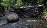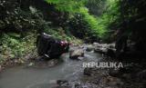 REPUBLIKA.CO.ID,KLATEN -- Warga melihat kondisi kendaraan mobil yang mengalami kecelakaan jatuh ke jurang di Sungai Manton, Jatinom, Klaten, Jawa Tengah, Rabu (10/5/2023).
