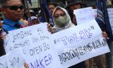 Puluhan buruh yang tergabung dalam Konfederasi Serikat Buruh Muslimin Indonesia (K-Sarbumusi) Kabupaten Jombang menggelar unjuk rasa di Unit Pelaksana Teknis Balai Latihan Kerja (UPT BLK) Kabupaten Jombang, Jawa Timur, Rabu (10/5/2023). Dalam aksinya mereka menuntut penuntasan kasus buruh terbengkalai yang terkena PHK sepihak dan tidak direspon pemerintah serta menyoroti anggaran Rp900 juta untuk melaksanakan pelatihan yang seolah hanya dibuat kegiatan serimonial tanpa ada pendampingan. (FOTO : Antara/Syaiful Arif )