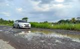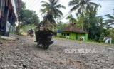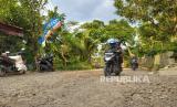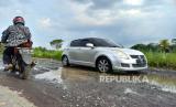 Sejumlah kendaraan melintas di Jalan Cipanas Galunggung, Desa Gunungsari, Kecamatan Sukaratu, Kabupaten Tasikmalaya, Rabu (10/5/2023). Jalan menuju objek wisata Gunung Galunggung itu telah mengalami kerusakan sejak enam tahun terakhir. (FOTO : Republika/Bayu Adji P)