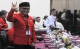 Sekjen PDI Perjuangan Hasto Kristyanto tiba untuk menyerahkan berkas pendaftaran bakal calon legislatif di Kantor KPU, Jakarta, Kamis (11/5/2023). (FOTO : Republika/Putra M. Akbar)