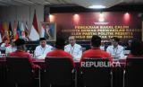 Ketua KPU Hasyim Asyari menerima perwakilan PDI Perjuangan saat pendaftaran bakal calon legislatif di Kantor KPU, Jakarta, Kamis (11/5/2023). (FOTO : Republika/Putra M. Akbar)