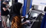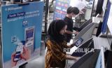 Nasabah menunjukkan aplikasi mobile banking BCA Syariah di ATM BCA di Jakarta, Kamis (11/5/2023). Transaksi mobile banking BCA Syariah menunjukkan pertumbuhan yang konsisten. Per Maret 2023, jumlah transaksi mencapai 1,8 juta transaksi atau meningkat 41,5 persen dengan pertumbuhan jumlah pengguna mobile banking sebesar 25,9 persen dibandingkan periode yang sama tahun sebelumnya. Modernisasi IT dan pengembangan fitur e-channel menjadi salah satu strategi perusahaan untuk mencapai pertumbuhan Dana Pihak Ketiga (DPK) yang ditargetkan tumbuh 10 sampai 12 persen di akhir tahun 2023. (FOTO : Republika/Edwin Dwi Putranto)