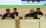 Presiden Direktur PT Adaro Energy Indonesia Tbk (Adaro) Garibaldi Thohir berbincang dengan Presiden Komisaris Adaro Edwin Soeryadjaya sebelum melaksanakan Rapat Umum Pemegang Saham Tahunan (RUPST) di Jakarta, Kamis (11/5/2023). RUPST kali ini menyetujui dan mengesahkan antara lain laporan tahunan dan laporan keuangan konsolidasi ADRO tahun 2022. Adaro terus berfokus pada efisiensi dan keunggulan operasional serta meningkatkan kontribusi bagi Indonesia diantaranya dalam bentuk pajak dan royalti. Pada tahun FY22, royalti dan pajak penghasilan badan yang dibayarkan kepada Pemerintah Indonesia mencapai $2.876 juta atau 222% lebih tinggi daripada $893 juta pada FY21. (FOTO : Prayogi/Republika)