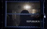 Siluet seorang imigran terlihat dari jendela bus yang akan membawa mereka ke pusat pemrosesan setelah mereka menyeberang di AS secara ilegal, di Yuma, Arizona, AS, (11/5/2023). (FOTO : EPA-EFE/ETIENNE LAURENT)