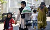 Warga membawa beras usai penyaluran di kantor PT Pos Indonersia (Persero) Cabang Banda Aceh, Aceh, Jumat (12/5/2023). (FOTO : ANTARA FOTO/Ampelsa)