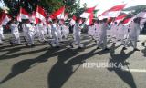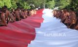REPUBLIKA.CO.ID, KEDIRI -- Pemuda dan pemudi membawa bendera merah putih sepanjang 77 meter saat Kirab Kebangsaan di Kediri, Jawa Timur, Jumat (12/5/2023).