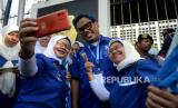 REPUBLIKA.CO.ID,JAKARTA -- Pelawak Uya Kuya berfoto dengan para kader saat mengikuti penyerahan berkas pendaftaran bakal caleg PAN di Kantor KPU RI, Jakarta, Jumat (12/5/2023).