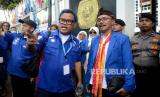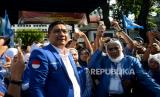 Musisi Sigit Purnomo alias Pasha Ungu dan Pelawak Elly Sugigi saat mengikuti penyerahan berkas pendaftaran bakal caleg PAN di Kantor KPU RI, Jakarta, Jumat (12/5/2023). Fenomena publik figur atau artis yang banting setir ke dunia politik ini pun sudah muncul sejak lama. Tak jarang, mereka pun memilih untuk meneruskan karier mereka di politik untuk maju menjadi calon legislatif (caleg) dibanding dunia hiburan. (FOTO : Republika/Prayogi)