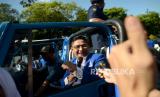 Musisi Sigit Purnomo alias Pasha Ungu saat mengikuti penyerahan berkas pendaftaran bakal caleg PAN di Kantor KPU RI, Jakarta, Jumat (12/5/2023). Fenomena publik figur atau artis yang banting setir ke dunia politik ini pun sudah muncul sejak lama. Tak jarang, mereka pun memilih untuk meneruskan karier mereka di politik untuk maju menjadi calon legislatif (caleg) dibanding dunia hiburan. (FOTO : Republika/Prayogi)