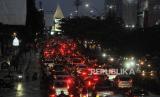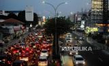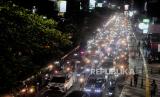 Pendar cahaya dari lampu kendaraan yang terjebak kemacetan di Jalan Raya Margonda, Depok, Jawa Barat, Jumat (12/5/2023). Kemacetan di jalan tersebut kerap terjadi saat jam berangkat dan pulang kerja. Peran Kota Depok sebagai kota satelit atau penyangga Ibu Kota DKI Jakarta membuat kota tersebut menjadi salah satu jalur mobilitas masyarakat serta menimbulkan tingginya volume kendaraan di Jalan Margonda yang merupakan salah satu akses keluar masuknya kendaraan dari Jakarta maupun Bogor. Selain itu kurang disiplinnya masyarakat yang masih suka memarkirkan kendaraannya sembarangan di tepi jalan, simpangan u-turn yang dibuka pada lintasan yang rawan kepadatan kendaraan serta kurangnya sarana jembatan penyeberangan orang yang membuat pejalan kaki menyeberangi jalan tidak pada tempatnya, membuat kemacetan di Jalan Raya Margonda harus terjadi setiap harinya. (FOTO : Republika/Putra M. Akbar)