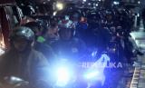 Pengendara motor terjebak kemacetan di Jalan Raya Margonda, Depok, Jawa Barat, Jumat (12/5/2023). Kemacetan di jalan tersebut kerap terjadi saat jam berangkat dan pulang kerja. Peran Kota Depok sebagai kota satelit atau penyangga Ibu Kota DKI Jakarta membuat kota tersebut menjadi salah satu jalur mobilitas masyarakat serta menimbulkan tingginya volume kendaraan di Jalan Margonda yang merupakan salah satu akses keluar masuknya kendaraan dari Jakarta maupun Bogor. Selain itu kurang disiplinnya masyarakat yang masih suka memarkirkan kendaraannya sembarangan di tepi jalan, simpangan u-turn yang dibuka pada lintasan yang rawan kepadatan kendaraan serta kurangnya sarana jembatan penyeberangan orang yang membuat pejalan kaki menyeberangi jalan tidak pada tempatnya, membuat kemacetan di Jalan Raya Margonda harus terjadi setiap harinya. (FOTO : Republika/Putra M. Akbar)
