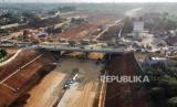 REPUBLIKA.CO.ID,DEPOK -- Foto udara suasana pengerjaan proyek pembangunan Tol Serpong - Cinere di ruas Pamulang - Cinere di Limo, Depok, Jawa Barat, Jumat (12/5/2023).