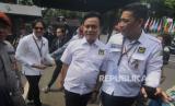 Ketua Umum Partai Bulan Bintang Yusril Ihza Mahendra tiba untuk menyerahkan berkas pendaftaran bakal calon legislatif di Kantor KPU, Jakarta, Sabtu (13/5/2023). Partai Bulan Bintang resmi mendaftarkan 580 bakal calon legislatif untuk DPR RI dan memenuhi syarat keterwakilan perempuan mencapai 40 persen pada Pemilu 2024. (FOTO : Republika/Putra M. Akbar)