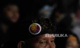 Relawan Jokowi memakai pin Ganjar Pranowo saat acara Halal Bihalal di Jakarta, Sabtu (13/5/2023). Ganjar Pranowo menghadiri acara Halal Bihalal yang dihadiri 245 organisasi Relawan Jokowi yang nantinya bertranformasi mendukung Ganjar pada Pilpres 2024. (FOTO : Republika/Putra M. Akbar)