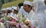 Setelah mengikuti prosesi pernikahan, sejumlah pengantin melempar bunga sebagai tanda syukur dan kebahagiaan mereka. Acara ini juga dihadiri oleh para keluarga dan kerabat dari pengantin yang turut merayakan momen bersejarah tersebut termasuk Gubernu Jawa Barat, Ridwan Kamil.