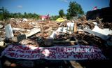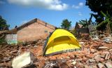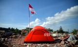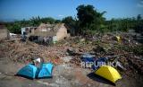 Pendirian tenda di puing bangunan rumah warga ini sebagai aksi protes atas ganti rugi yang ditawarkan tidak sesuai. (FOTO : Republika/Wihdan Hidayat)