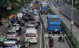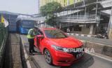 REPUBLIKA.CO.ID,JAKARTA -- Polisi menilang pengendara mobil yang melewati jalur Bus Transjakarta di kawasan Pasar Rumput, Manggarai, Jakarta Selatan, Senin (15/5/2023).