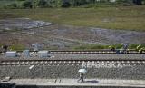 Pekerja beraktivitas di area Stasiun Kereta Cepat Jakarta Bandung (KCJB) Tegalluar, Kabupaten Bandung, Jawa Barat, Senin (15/5/2023). PT Kereta Cepat Indonesia Cina (KCIC) segera melakukan tes comissioning atau uji fungsi KCJB yang meliputi pengujian dan assesment sarana prasarana kereta cepat dan integrasi sistem. Termasuk uji dinamis perjalanan electric multiple unit (EMU) atau comprehensive inspection train (CIT) yang akan dilakukan di sepanjang trase KCJB. (FOTO : ABDAN SYAKURA/REPUBLIKA)
