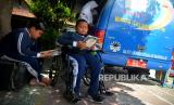 Petugas Perpustakaan Keliling Kota Yogyakarta mengambilkan buku bacaan siswa saat kunjungan ke SDN 2 Keputran, Yogyakarta, Senin (15/5/2023). Setiap dua pekan perpustakaan keliling akan berkunjung ke sekolah dasar. Program ini untuk meningkatkan minat dan kebiasaan membaca siswa sekolah. Tidak hanya itu, petugas juga membantu dan mendampingi siswa-siswa yang membaca buku. (FOTO : Republika/Wihdan Hidayat)