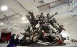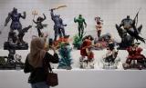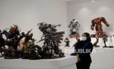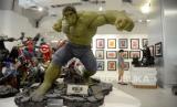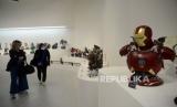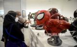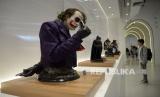 Pengunjung mengamati patung superhero di STATUE4HEROES GALLERY di Lotte Mall, Jakarta, Senin (15/5/2023). (FOTO : Republika/Prayogi)