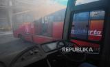 Kondisi Bus Transjakarta yang rusak dan tidak terawat yang terparkir di Terminal Terpadu Pulo Gebang, Jakarta Timur, Senin (15/5/2023). (FOTO : Republika/Putra M. Akbar)