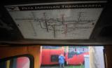Warga melihat Bus Transjakarta yang rusak dan tidak terawat yang terparkir di Terminal Terpadu Pulo Gebang, Jakarta Timur, Senin (15/5/2023). (FOTO : Republika/Putra M. Akbar)