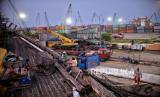Buruh angkut berkativitas di Pelabuhan Sunda Kelapa, Jakarta, Senin (15/5/2023). (FOTO : Republika/Thoudy Badai)
