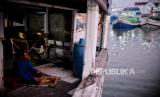 Ahmad (64) beristirahat di atas kapal di Pelabuhan Sunda Kelapa, Jakarta, Senin (15/5/2023). (FOTO : Republika/Thoudy Badai)