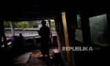 Ahmad (64) bersiap menunaikan ibadah shalat maghrib disela sela aktivitasnya di atas kapal di Pelabuhan Sunda Kelapa, Jakarta, Senin (15/5/2023). (FOTO : Republika/Thoudy Badai)