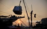 Buruh angkut saat bongkar muat di atas kapal di Pelabuhan Sunda Kelapa, Jakarta, Senin (15/5/2023). (FOTO : Republika/Thoudy Badai)