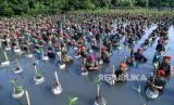 REPUBLIKA.CO.ID, JAKARTA -- Presiden Joko Widodo didampingi Menteri Pertahanan Prabowo Subianto, Panglima TNI Laksamana TNI Yudo Margono dan Kapolri Jenderal Pol Listyo Sigit Prabowo menanam mangrove dalam Puncak Penanaman Mangrove Nasional oleh TNI di Seluruh Indonesia 2023 di Taman Wisata Alam Angke Kapuk, Jakarta Utara, Senin (15/5/2023).