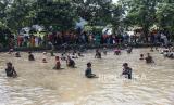 REPUBLIKA.CO.ID, DEPOK -- Sejumlah warga menangkap ikan saat tradisi ngubek empang di Bojongsari, Depok, Jawa Barat, Senin (15/5/2023).