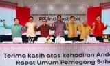 REPUBLIKA.CO.ID,JAKARTA -- (dari kiri-kanan) Direktur Irsyad Sahroni, Direktur Ritesh Singh, Direktur Ahmad Zulfikar, Direktur Utama Vikram Sinha, Direktur Desmond Cheung, Direktur Muhammad Buldansyah dan Direktur Nicky Lee Chi Hung saat RUPST PT Indosat Tbk yang berlangsung di Jakarta, Senin (15/5/2023).