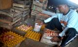 Pekerja menyortir telur ayam negeri di Peternakan Ayam Petelur Abang AE, Sleman, Yogyakarta, Selasa (16/5/2023). Menurut peternak, naiknya harga telur ayam negeri yang mencapai Rp 31 ribu per kilogram banyak faktornya. Salah satu penyebabnya yakni naiknya harga pakan imbas konflik Rusia dan Ukraina. Menurut peternak harga telur ayam yang pas di kisaran Rp 27 ribu per kilogram. (FOTO : Republika/Wihdan Hidayat)