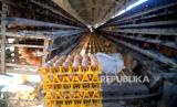 Peternakan Ayam Petelur Abang AE di Sleman, Yogyakarta, Selasa (16/5/2023). Menurut peternak, naiknya harga telur ayam negeri yang mencapai Rp 31 ribu per kilogram banyak faktornya. Salah satu penyebabnya yakni naiknya harga pakan imbas konflik Rusia dan Ukraina. Menurut peternak harga telur ayam yang pas di kisaran Rp 27 ribu per kilogram. (FOTO : Republika/Wihdan Hidayat)