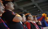 REPUBLIKA.CO.ID, PHNOM PENH -- Ketua Umum PSSI Erick Thohir menyanyikan lagu kebangsaan Indonesia Raya saat akan dimulainya pertandingan final sepak bola SEA Games 2023 di National Olympic Stadium, Phnom Penh, Kamboja, Selasa (16/5/2023).