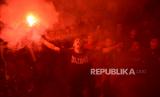REPUBLIKA.CO.ID, Laga pertandingan Final Sepak Bola SEA Games 2023 antara Timnas U-22 Indonesia melawan Thailand disejumlah tempat mengelar nontan bareng (nobar) di Denpasar, Solo, Demak, Selasa (16/5/2023). Timnas Indonesia berhasil meraih medali emas SEA Games Kamboja setelah mengalahkan Thailand dengan skor 5-2.