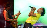 Vokalis kelompok musik Slank Kaka (kanan) dan gitaris Ridho (kiri) beraksi menghibur penonton saat Konser Slank-Album Tujuh 25th Anniversary Tour di Denpasar, Bali, Rabu (17/5/2023). (FOTO : ANTARA FOTO/Fikri Yusuf)
