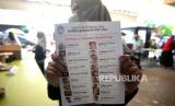 Warga menunjukkan surat suara saat Jogokariyan Pemilu Duluan di Masjid Jogokariyan, Yogyakarta, Kamis (18/5/2023). Jogokariyan Pemilu Duluan merupakan pemungutan suara untuk memilih pengurus takmir masjid periode 2023-2027 yang diadakan setiap empat tahun sekali. Sebanyak 2.150 jamaah warga Jogokariyan dan jamaah non warga akan memilih tujuh calon pengurus dari 18 calon yang mendaftar. Setiap warga berhak memilih tiga pilihan calon yang mendaftar. (FOTO : Republika/Wihdan Hidayat)