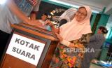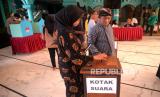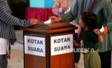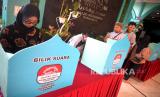 Warga memasukkan surat suara ke dalam kotak saat Jogokariyan Pemilu Duluan di Masjid Jogokariyan, Yogyakarta, Kamis (18/5/2023). Jogokariyan Pemilu Duluan merupakan pemungutan suara untuk memilih pengurus takmir masjid periode 2023-2027 yang diadakan setiap empat tahun sekali. Sebanyak 2.150 jamaah warga Jogokariyan dan jamaah non warga akan memilih tujuh calon pengurus dari 18 calon yang mendaftar. Setiap warga berhak memilih tiga pilihan calon yang mendaftar. (FOTO : Republika/Wihdan Hidayat)