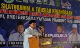 Menteri Pertahanan Republik Indonesia Prabowo Subianto (kanan) saat menghadiri silaturahmi dan tausiah kebangsaan di Masjid Istiqlal, Jakarta, Kamis (18/5/2023). Kegiatan tersebut digelar oleh Badan Komunikasi Pemuda Remaja Masjid Indonesia (BKPRMI), Dunia Melayu Dunia Islam (DMDI), dan Yayasan Prabowo Subianto dengan agenda tausiah kebangsaan sekaligus memberikan santunan kepada anak yatim. (FOTO : Republika/Thoudy Badai)