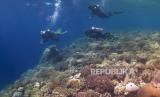 REPUBLIKA.CO.ID,WAKATOBI -- Wisatawan asing didampingi pegiat Wakatobi Dive Trip menyelam di bawah laut spot fan 38 Pulau Tomia, Wakatobi, Sulawesi Tenggara, Kamis (18/5/2023).