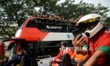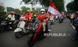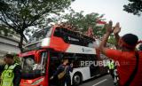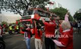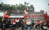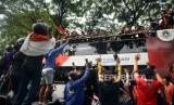 Suasana kirab juara kontingen Sea Games 2023 di Depan Gedung Kemenpora, Senayan, Jakarta, Jumat (19/5/2023).  (FOTO : Republika/Prayogi)